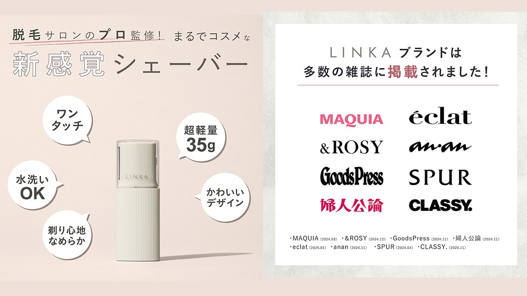 LINKAの電動シェイバーは、まるでコスメのようなデザインが特徴の美容機器です。ムダ毛ケアをしながら気分も上がる、持ち運びたくなるかわいさが魅力。USB Type-C充電式で、電池交換不要で軽量。ブレードはワンタッチで着脱可能、水洗いもできるので清潔に保てます。外刃の先端は丸く加工されており、安全面にも配慮。肌に優しい設計で、安心して使用できます。ポーチに入れて、いつでもどこでも手軽にムダ毛ケアが可能です。