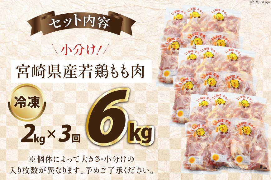 鶏肉 3回 定期便 宮崎県産 若鶏 もも 2kg [エム・ティ・シー 宮崎県 日向市 452061367] 小分け モモ もも肉 モモ肉 冷凍 肉 宮崎