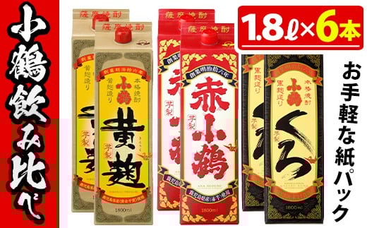 - No.052 小鶴ブランド飲み比べ1升パック6本セット(1800ml×6本) 酒 焼酎 鹿児島 さつま芋 芋焼酎 米麹 小鶴 麹 セット 1升 一升 パック 紙パック 飲み比べ セット 常温 常温保存【小正醸造】