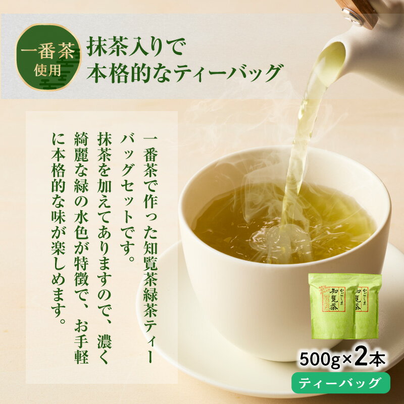 - 【ふるさと納税】緑茶 知覧緑茶 ティーバッグ 500g × 2 計1kg 約 166個 一番茶 アイス ホット 水出し お湯 お茶 卸問屋 抹茶入り 濃い 綺麗 緑色 お手軽 本格 鹿児島県産 日本茶 緑茶 国産 お取り寄せ ギフト 贈り物 手土産 知覧 飲料 ドリンク 鹿児島県 南九州市 送料無料