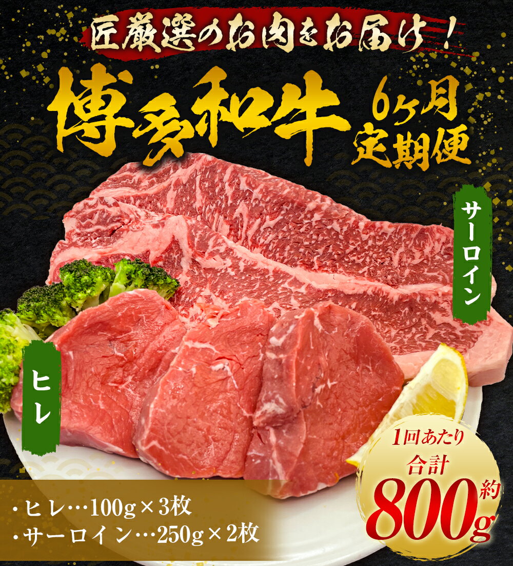 - 【ふるさと納税】 【6ヵ月定期便】博多和牛 ヒレとサーロイン ヒレ100g×3枚 サーロイン250g×2枚 月1回の6ヵ月お届け 肉 お肉 赤身 牛肉 ヒレ ヒレ肉 ステーキ肉 ステーキ 冷凍 送料無料 福岡県 うきは市