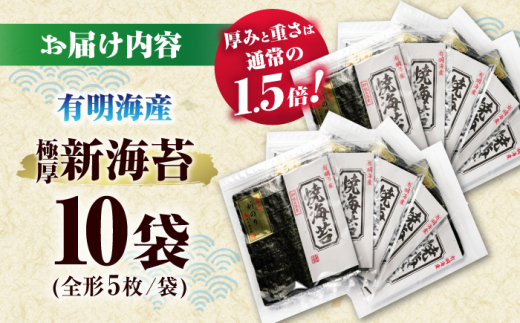 - 極厚!!(厚みと重さ1.5倍)新海苔 焼海苔10袋セット 全形5枚×10袋 福岡有明のり <木村食品> 那珂川市 [GFW041]