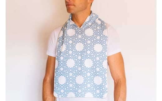 - 持ち歩ける2WAYハンカチエプロン<捺染 千曲川×シャインマスカット Lサイズ>| 伝統技法 食事用 千曲市 長野県産 信州