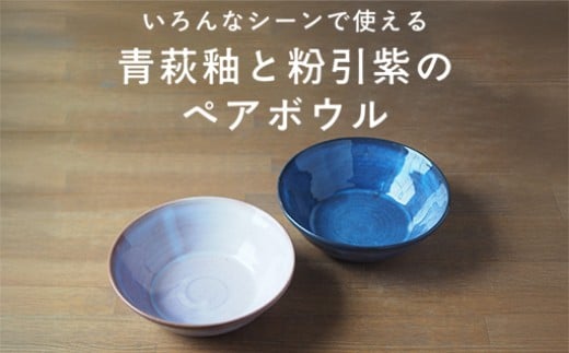 ペアボウル(青萩釉、粉引紫) |HG000661