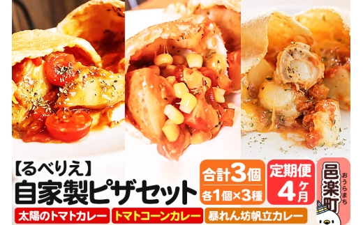 《定期便4ヶ月》自家製ピザ 揚げピザ カレー3種セット(太陽のトマトカレー+トマトコーンカレー+暴れん坊帆立カレー)各1個 計3個【冷凍】邑楽町 るべりえ