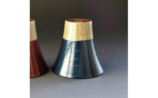 【漆工芸・黄薇彫】色漆・ぐい吞み『逆さ富士』/青富士021-004