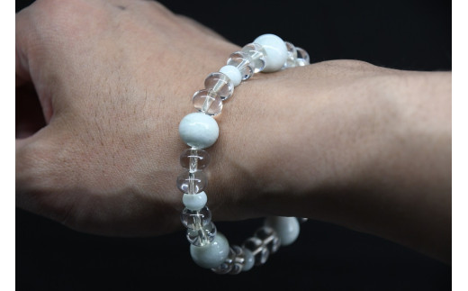 水晶手摺り平玉糸魚川ヒスイ仕立ブレスレット
