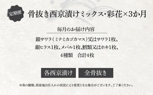 【骨抜き定期便】骨抜き西京漬けミックス・彩花×3か月