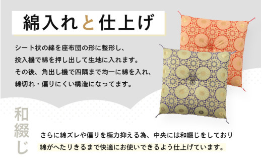 床の硬さを感じにくい「反毛わた」座布団 仏前座布団 金襴 3枚組【紫色】 [E-20401_01]