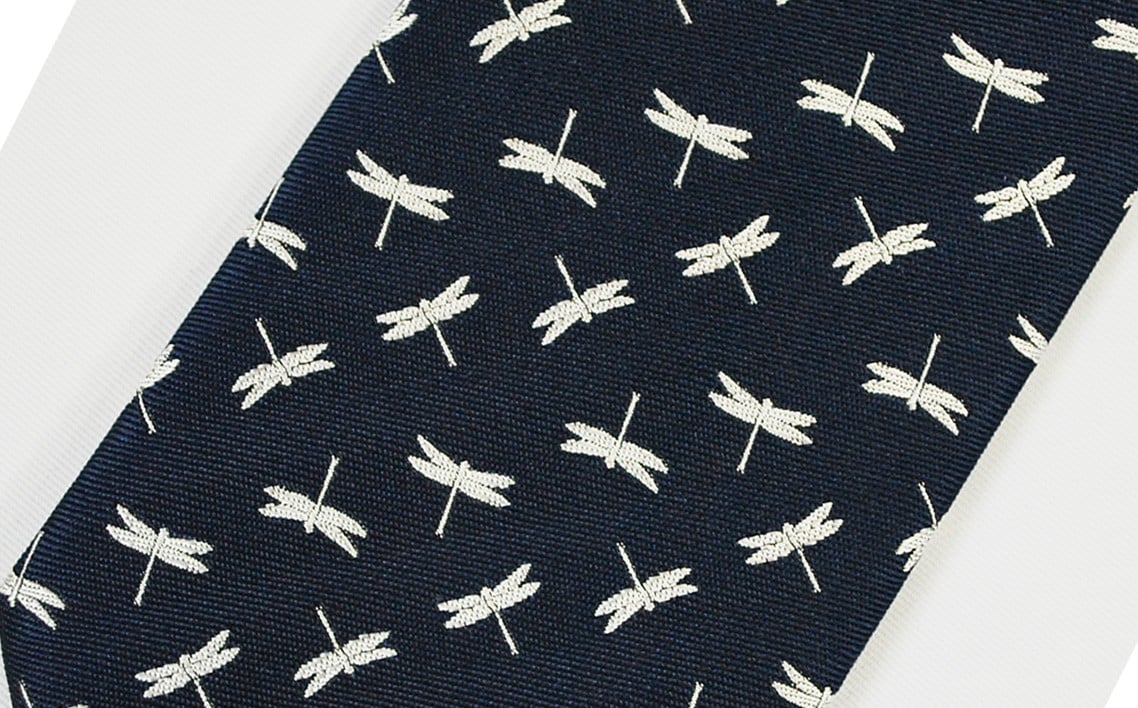 【手織りネクタイ】ネイビー 2ラインタイ kuskafabric 京都・丹後のシルク織物
