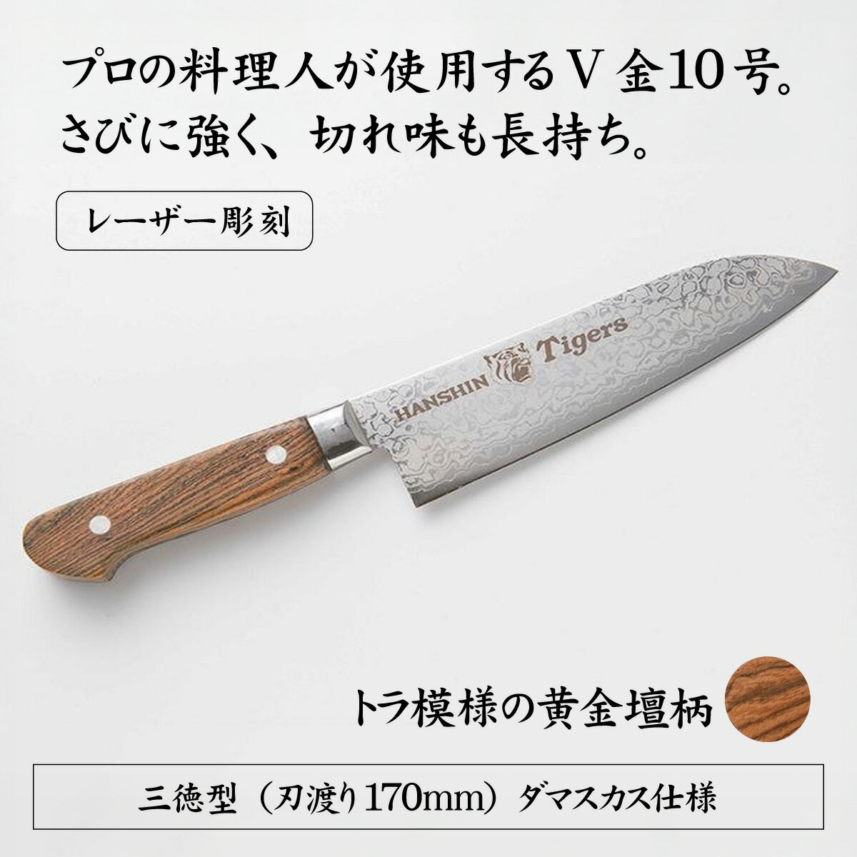 【ふるさと納税】球団承認タイガース包丁三徳型トラ模様の黄金壇柄とまな板のセット / 料理 送料無料