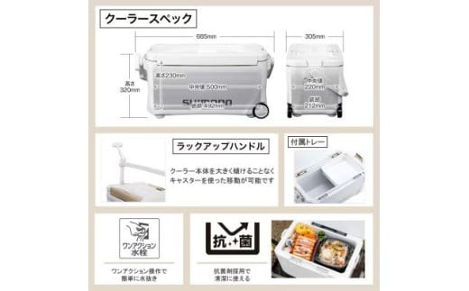 HUGEL 真空断熱クーラーボックス 60L VITC-60 ホワイトアッシュ 大型 真空断熱 HUGEL アイリスオーヤマ 高保冷 クーラーBOX アウトドア キャンプ BBQ スポーツ レジャー