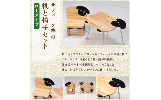 【E7044】木製 サフォーク羊の机と椅子セット(1セット) 折り畳み 折りたたみ 折り畳み式 机 テーブル サイドテーブル ローテーブル イス 腰掛け インテリア 木 手作り 収納 羊 動物 家具 ギフト プレゼント 【創温手 順工房】