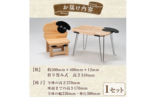 - 【E7044】木製 サフォーク羊の机と椅子セット(1セット) 折り畳み 折りたたみ 折り畳み式 机 テーブル サイドテーブル ローテーブル イス 腰掛け インテリア 木 手作り 収納 羊 動物 家具 ギフト プレゼント 【創温手 順工房】