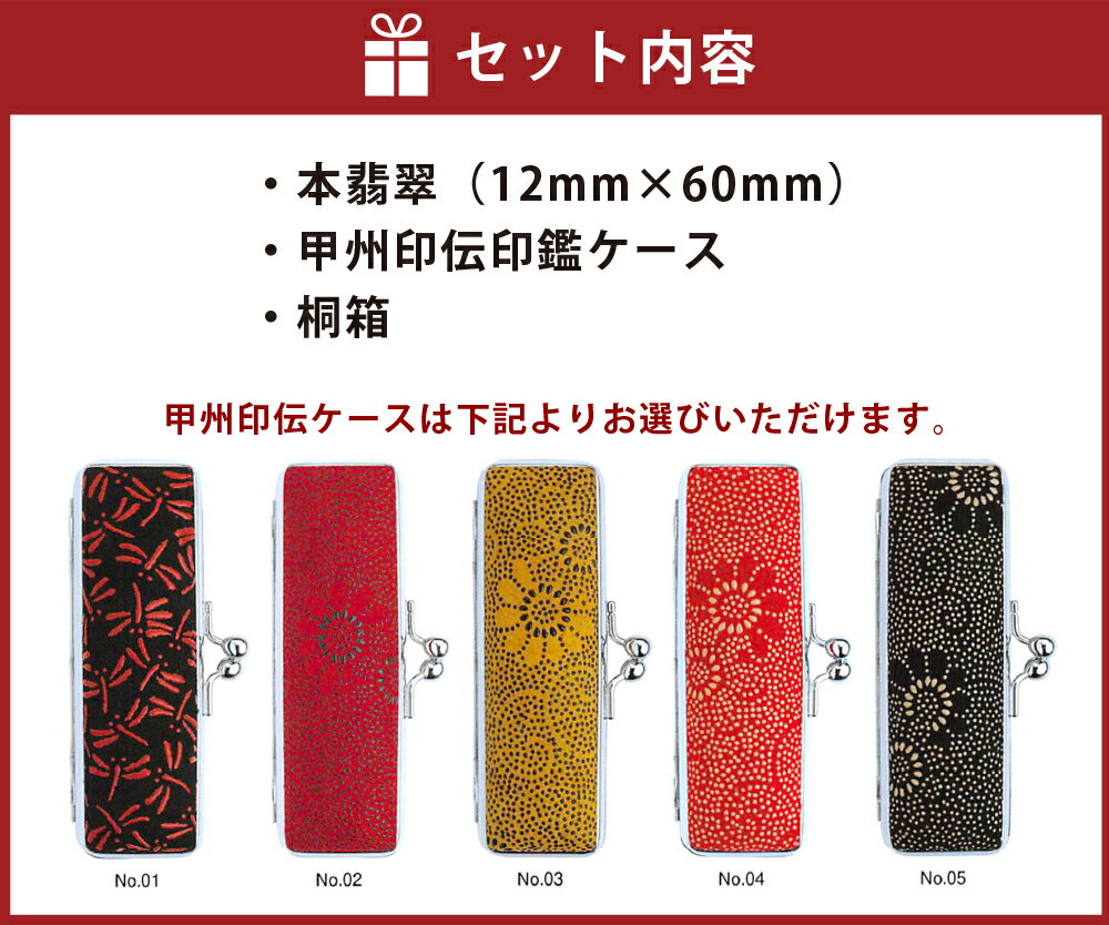 【ふるさと納税】印鑑 天然本翡翠印鑑 12mm 開運吉相印 甲州印伝ケース 桐箱付宏雅堂 雑貨 日用品 実印 銀行印 彫刻 印鑑ケース 認印 はんこ
