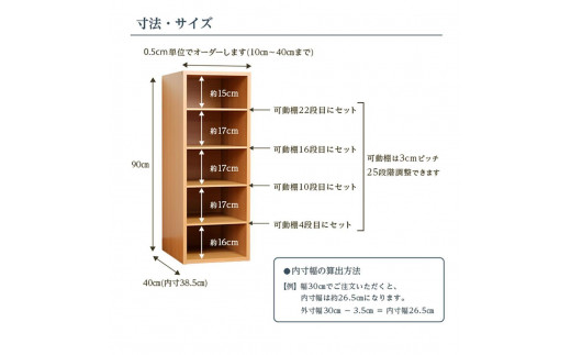 【ホワイト × 幅 21cm】奥行40 高さ90cm 幅0.5cm単位でオーダーカット すきま収納