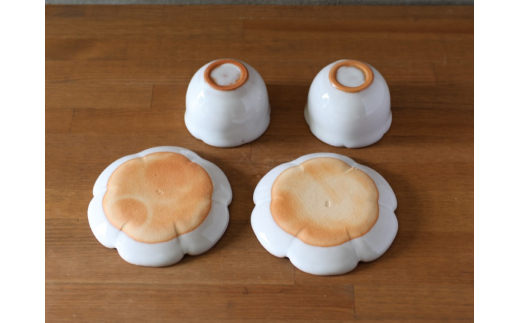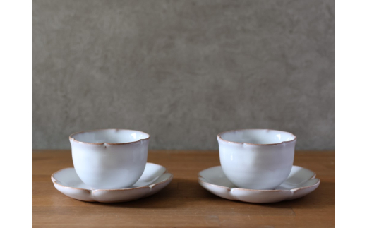 - 萩焼 セット 花形 ペア 碗皿 白萩釉 器 皿 お皿 カップ 工芸品 |HG000918
