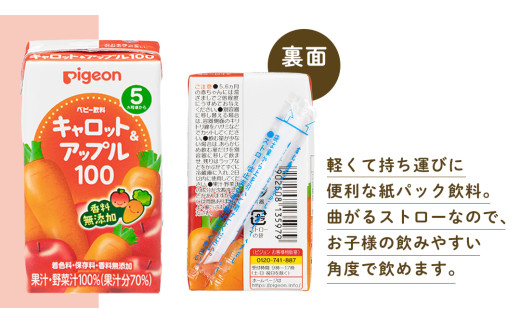 【 ピジョン 】 キャロット & アップル 100 125ml × 48個 紙パック飲料 赤ちゃん 赤ちゃん用品 ベビー ベビー用品 ベビーグッズ 乳児 ベビー飲料 飲料 紙パック にんじん りんご ジュース お出かけ 飲み物 セット 水分補給 お水 あかちゃん キッズ