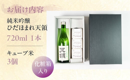 天領酒造 純米吟醸ひだほまれ 720ml 1本・山仙キューブ米3個(1個 300g)セット 純米吟醸 天領 酒 日本酒 米 ギフト いのちの壱 山仙 贈答 下呂市