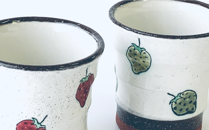 - 【波佐見焼】モダン コップ ペアセット いちご柄 カップ 湯呑み 食器 皿 【ROXY・HASAMI】 [SB134]