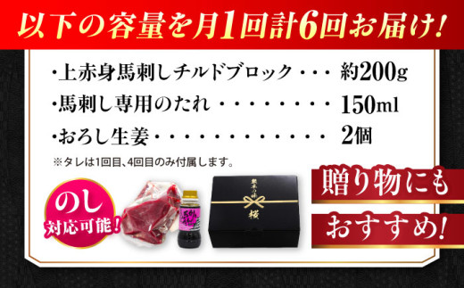 【全6回定期便】『純国産』熊本の味 上赤身 馬刺し 約200g ブロック チルド 冷蔵 タレ付き【有限会社 九州食肉産業】 [AYCN038]