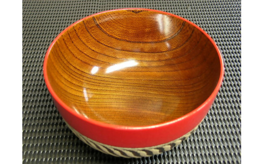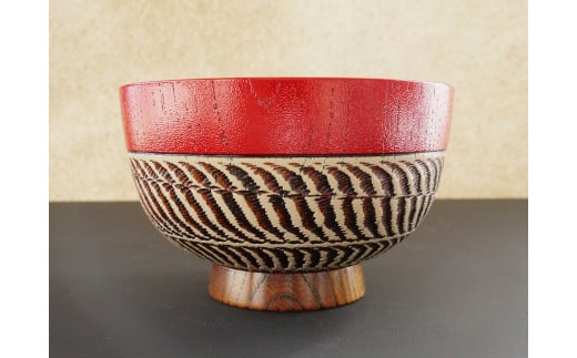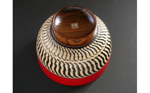 【漆工芸・黄薇彫】ケヤキ・汁椀(乱線文様)/赤030-032