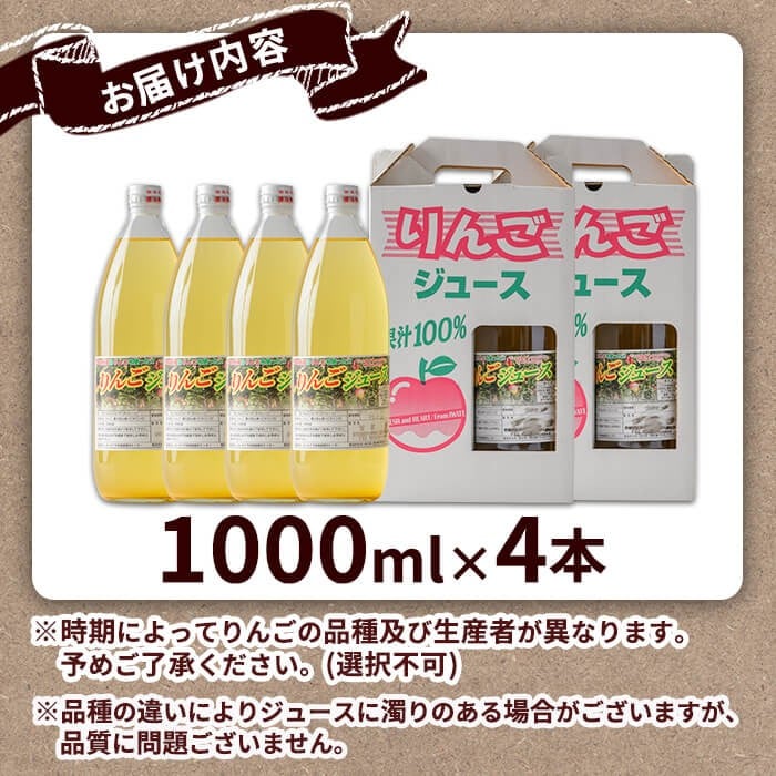 - ≪登米市産りんご100%使用≫ りんごジュース 4本セット (1000ml×4本) りんご リンゴ 林檎 ジュース リンゴジュース 飲み物 飲料 フルーツ 果物 水分補給 ドリンク 【協同組合産直なかだ愛菜館】tm222