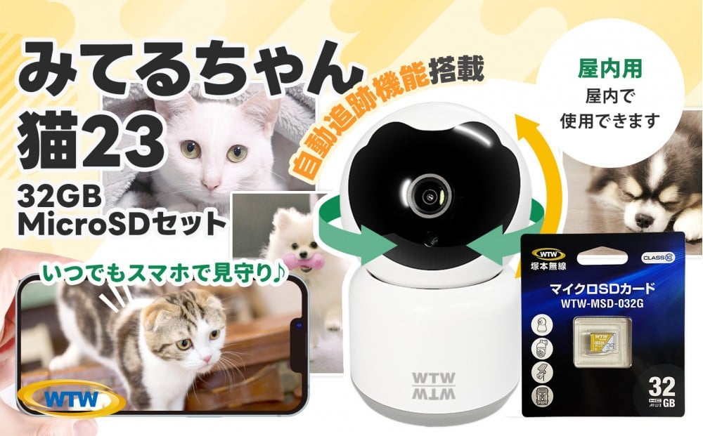 - みてるちゃん猫23 WTW-NEKO 見守りペットカメラ 防犯カメラ 32GBMicroSD