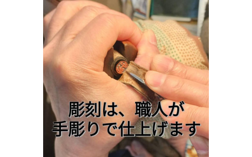 - 印鑑 黒水牛12mm丸 牛革製ケースつき 手彫り仕上げ