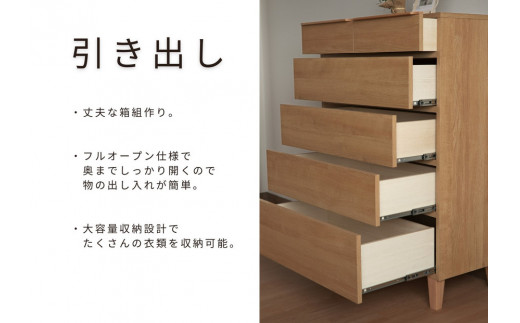【ウォールナット】大川家具 幅90cm 5段 チェスト -gold-ゴールド