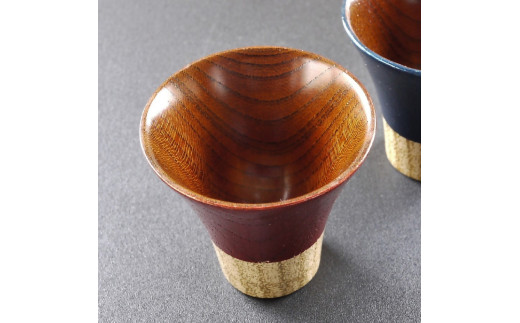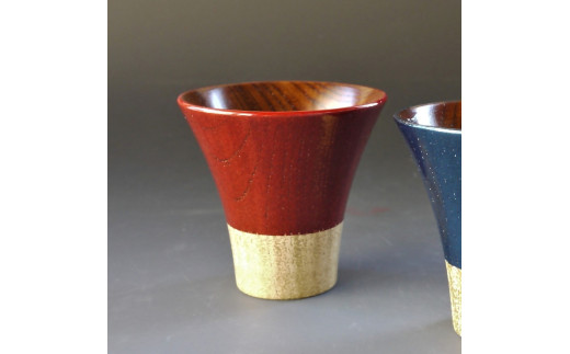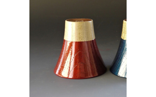 - 【漆工芸・黄薇彫】色漆・ぐい吞み『逆さ富士』/赤富士021-005