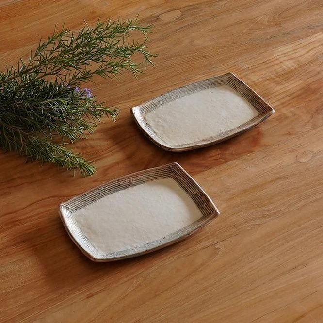 - 信楽焼 ケーキ皿(横彫)2枚セット【古谷製陶所】