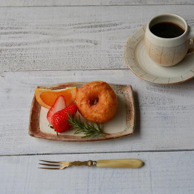 信楽焼 ケーキ皿(横彫)2枚セット【古谷製陶所】