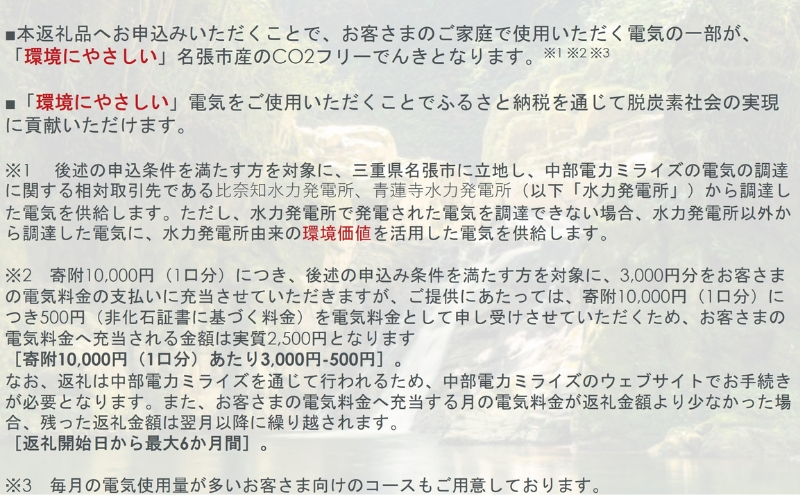 - 名張市産CO2フリーでんき 30,000円コース(注:お申込み前に申込条件を必ずご確認ください) /中部電力ミライズ 電気 電力 三重県 名張市