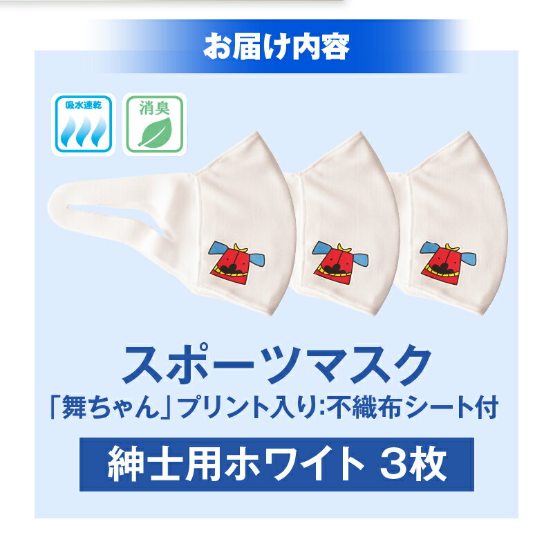 - 【ふるさと納税】スポーツマスク(獅子キャラクター「舞ちゃん」プリント入り)紳士用ホワイト×3枚セット 紳士用 スポーツ スポーツマスク ホワイト 速乾性 消臭機能付き 舞ちゃん 日本製 ギフト プレゼント 職人 手作り 香川県 伸縮素材 国内 国産 レガン おすすめ