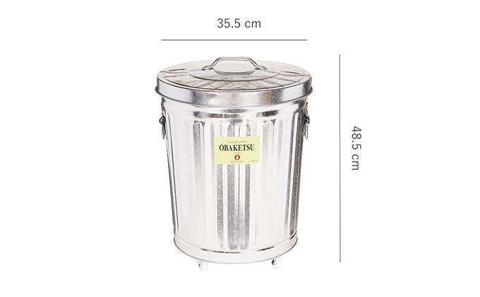 [№5258-0175]<オバケツ>バケツ職人が作るダストボックス・33Lキャスター付/純国産 インテリア【シルバー】