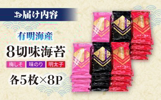 - 福岡有明のり 梅しそ・明太子・味のりセット8切5枚×各8【合計24Pセット】 <木村食品> 那珂川市 [GFW081]