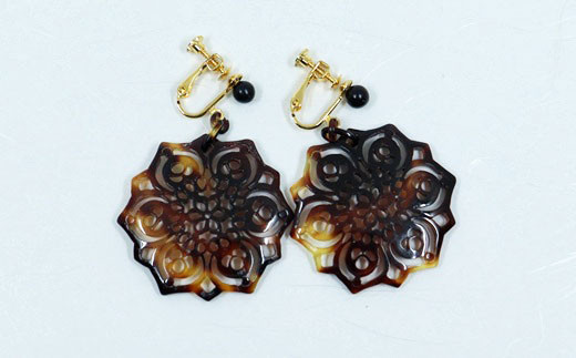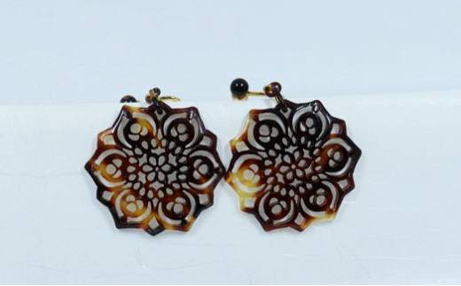 - JE-4.【奈良べっ甲】正倉院柄複合六弁花のイヤリング