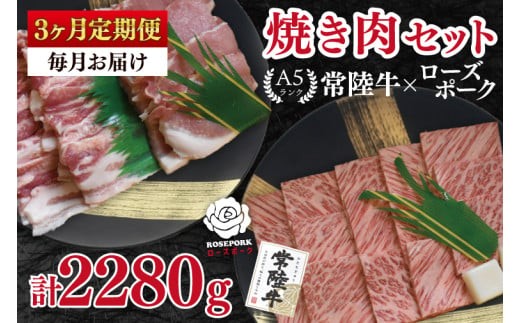 - 【3ヶ月定期便】【常陸牛 A5ランク・ローズポーク焼肉セット】常陸牛カルビ360g+ローズポーク400g(ロース200g・ばら200g) 冷凍 国産牛 和牛 牛肉 豚肉 ブランド豚 茨城県 水戸市 食べ比べ セット商品 国産 BBQ 老舗精肉店(EK-48_1)