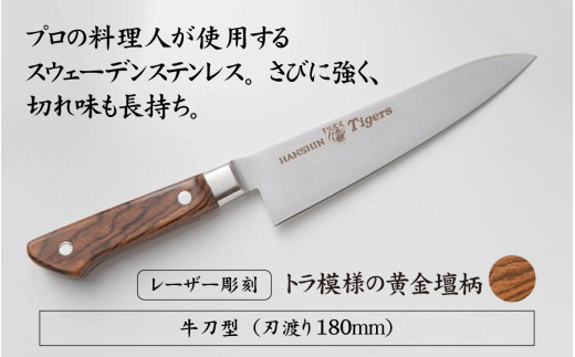 球団承認タイガース包丁牛刀型トラ模様の黄金壇柄とまな板のセット