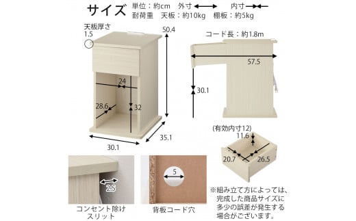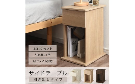 【完成品でお届け】サイドテーブル〔引き出し〕(ウォールナット)サイドテーブル 引き出し コンセント付 ナイトテーブル おしゃれ スリム ベッド ソファテーブル 高さ50cm コンパクト ベッドサイド 収納 コンセント ラック 木製 TKANBL500400-0-WAL