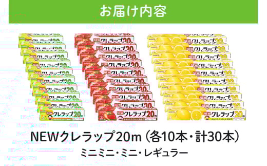 NEWクレラップ 20m レギュラー&ミニ&ミニミニ 各10本セット 日用品 15cm 15センチ 20メートル クレハ ニュークレラップ 切りやすい パッと切れる キッチン用品 台所 まとめ買い 76-JL