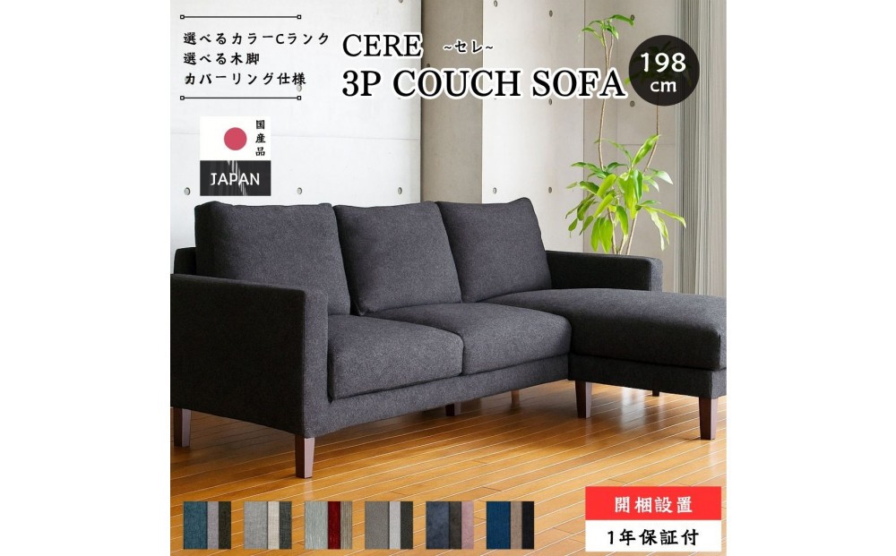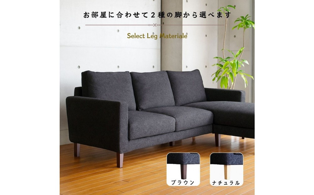 【開梱設置】3名掛け CERE 3Pカウチソファ 選べるカラー(Cランク)と脚部素材