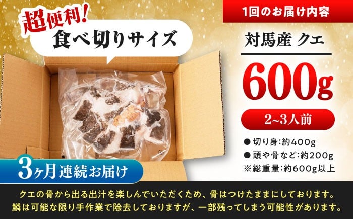 【全3回定期便】対馬 産 クエ 鍋 セット 600g (2~3人前)《対馬市》【対馬地域商社】九州 長崎 海鮮 [WAC033]冷凍 新鮮 くえ 鍋セット 海の幸 クエ 下処理 小分け 海産物 九州 長崎 唐揚げ からあげ 天ぷら てんぷら 煮付け クエ鍋 対馬 定期便 毎月届く