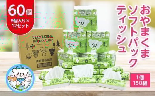 - おやまくまソフトパックティッシュ60個(5個入り×12セット)(1個150組)【1301735】
