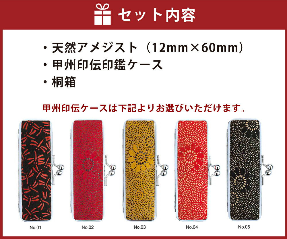 - 【ふるさと納税】天然アメジスト印鑑12mm開運吉相印[甲州印伝ケース・桐箱付] 雑貨 日用品 彫刻 天然石