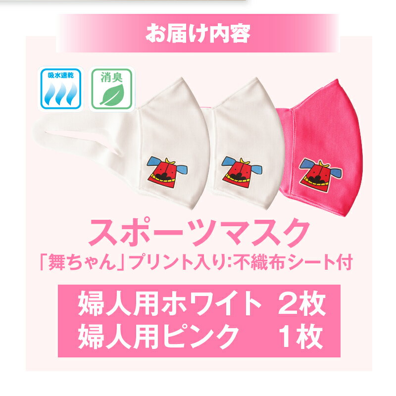 【ふるさと納税】スポーツマスク(獅子キャラクター「舞ちゃん」プリント入り)婦人用ホワイト×2枚+婦人用ピンク×1枚セット 婦人用 スポーツ スポーツマスク ホワイト ピンク 速乾性 消臭機能付き 日本製 ギフト 職人 手作り 香川県 伸縮素材 国内 国産 レガン