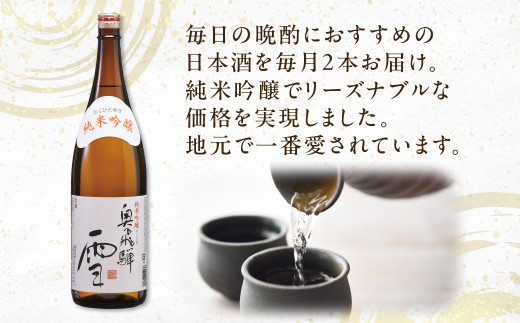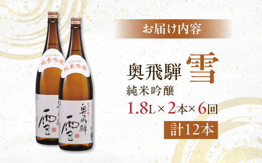 - 【定期便 6回】奥飛騨純米吟醸 雪 1.8L×2本(6ヶ月 計12本) 定期 毎月 酒 奥飛騨酒造 おすすめ 下呂市 純米吟醸 日本酒 6ヶ月