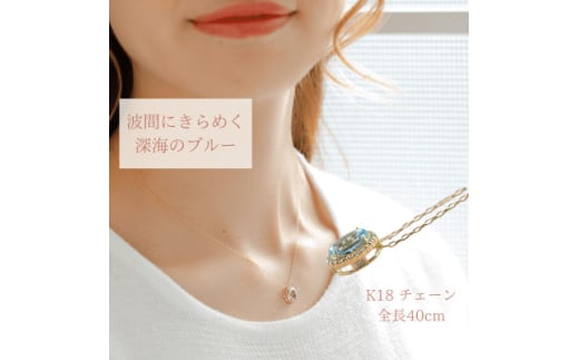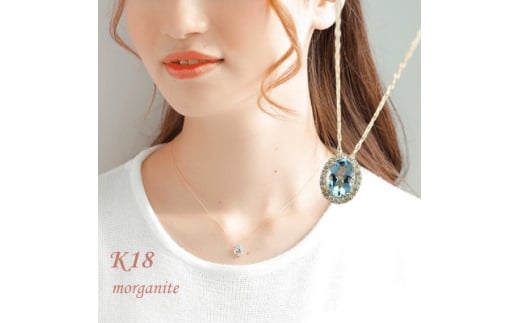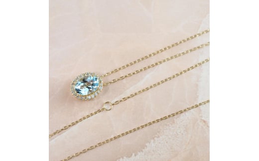 <山梨県><ジュエリー>アクアマリン(3月誕生石) K18ネックレス ダイヤ取り巻き(オーバル型)【1604726】