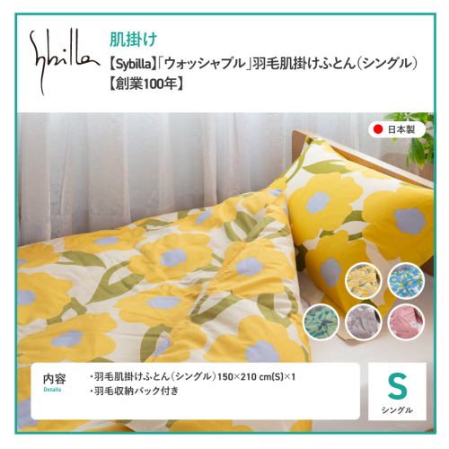 【Sybilla】「ウォッシャブル」羽毛肌掛けふとん(シングル)【創業100年】